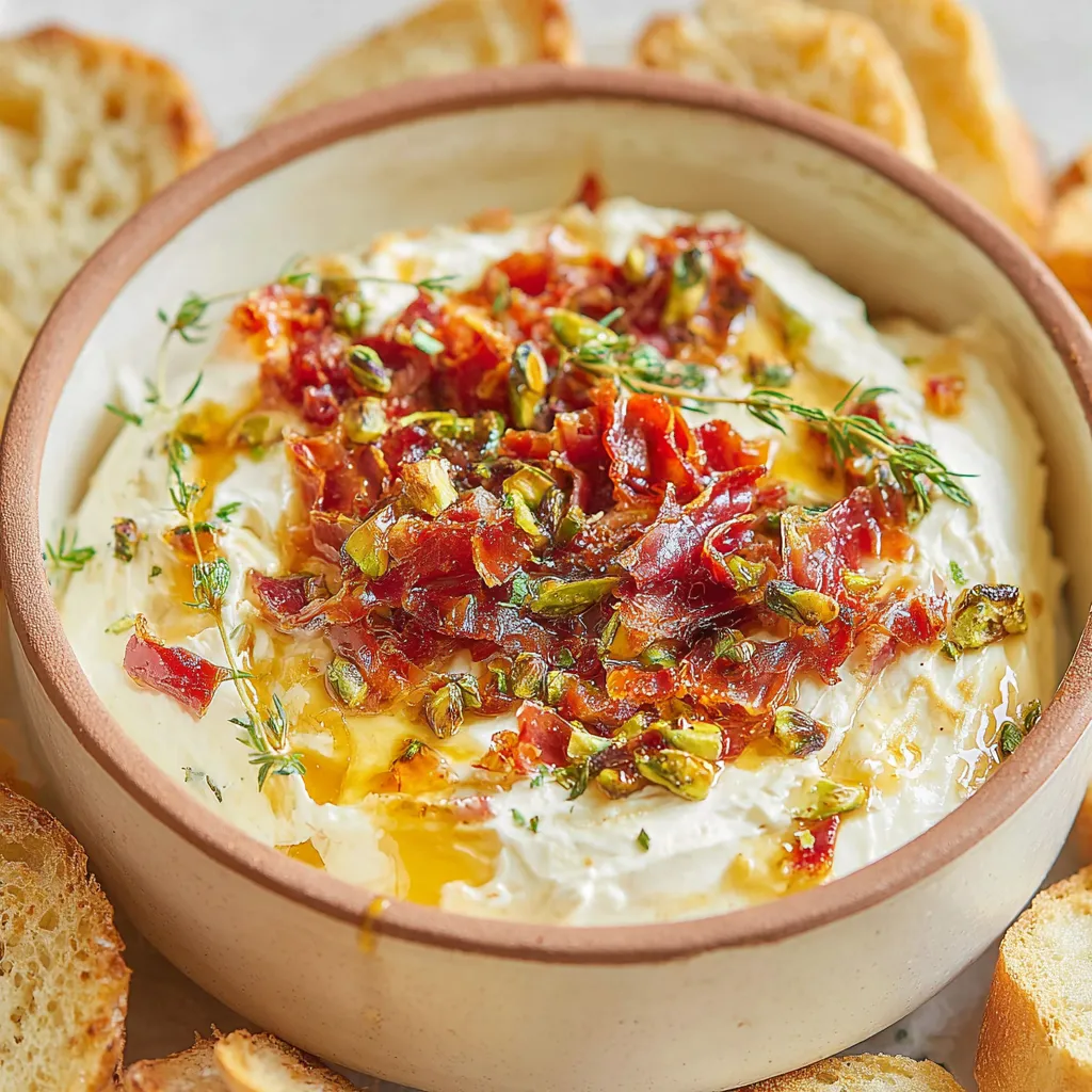 Whipped Brie Cheese Dip with Crispy Prosciutto, Honey & Pistachios