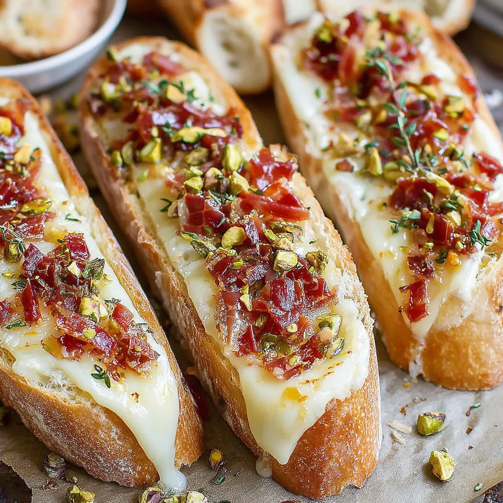 Brie Cheese Bread with Crispy Prosciutto, Pistachios & Hot Honey